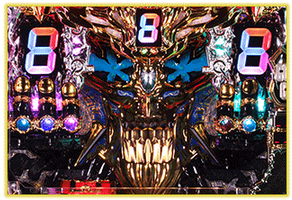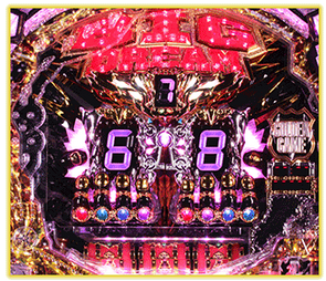 CRビッグドリーム~神撃 予告・リ-チアクション:その2 セグ色変化予告 ■セグの色が変わればチャンス。レインボーならば超激アツ!? 天地崩壊予告 ■左7セグの図柄が逆さまになっていると信頼度が大幅にアップする。 神のお告げ予告 ■図柄変動中に、あまり聞かないメッセージが流れると大チャンスに。 神!連打予告 ■枠点灯させる、ボタンプッシュ予告。連打で台枠を全点灯させることができれば激アツに。 次回予告 ■図柄消灯後の予告演出。「次回ジャッジメントチャンス」の声が聞ければ大チャンス。 ジャッジメントチャンス ■リーチが発展した後、扉開放で突入するジャッジメントチャンスは大当たりへの期待大。自ら盤面中央の宝箱からひとつ選び、見事宝が入っていればジャッジメントボーナス(確変大当たり)となる。 ギルガメッシュチャンス ■チャンス目またはノーマルリーチ後の特定出目で発生するチャンスゾーン。宝石がフラッシュすれば成功となり、ゴールデンチャレンジ(確変大当たりor通常大当たり)となる。 ゴールデンゲーム ■確変中のモードで右打ちでゲームを消化。最速0.7秒で高速消化するほか、扉が閉まれば終了となる。復活あり。 PR